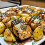 Sheet Pan Lemon Balsamic Chicken and Potatoes Made Easy is a simple, flavorful dish that combines chicken thighs or breasts with tender potatoes, all roasted together on one pan. The recipe features a zesty lemon and balsamic vinegar marinade that infuses the chicken and potatoes with bright flavors. This dish not only saves time on cleanup but also allows for a delicious meal to come together effortlessly. Perfect for busy weeknights, it’s an excellent choice for family dinners or gatherings.