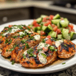 Spicy Mediterranean Chicken with Creamy Cucumber Salad Delight is a vibrant dish that combines tender, zesty marinated chicken with a refreshing cucumber salad. Baked to juicy perfection and paired with a cool Greek yogurt dressing, this recipe is ideal for weeknight dinners or entertaining guests. With its stunning presentation and bold flavors, it’s sure to impress everyone at the table.